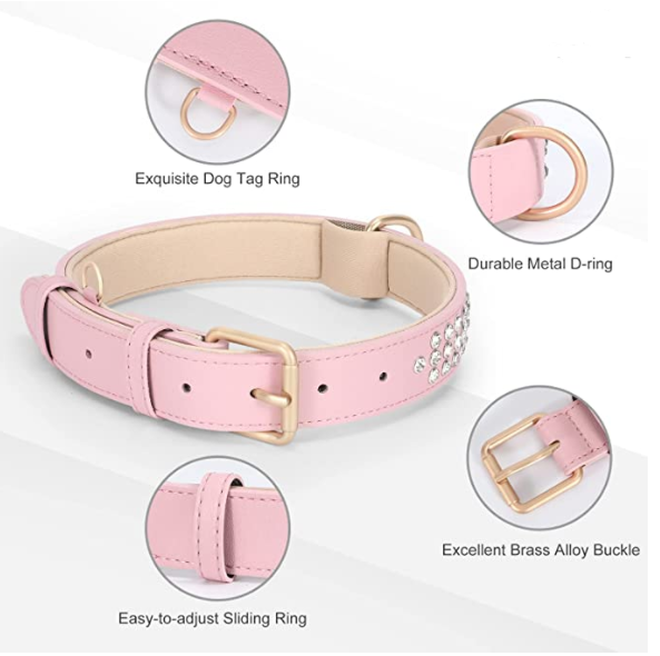 Rhinestone Design: The dog collar is decorated with many sparkling rhinestones for a very charming and cute look, which can be used to show off your dog and make your dog the center of attention. The rhinestones are all hand-set and are very durable. This dog collar is the most adorable bling your princess/prince will ever own!
