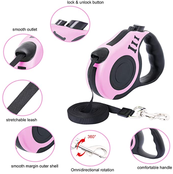 Retractable Leash: Length is 16FT/5m, suitable for small medium pets under 44lb. Inner diameter height of leash handle is 3.5"