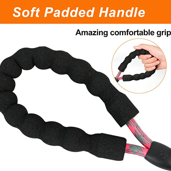 Soft Padded Handle: The handle of long leash is made of a soft and sturdy EVA which is for amazing comfortable shock grip, protects your hand from rope burn, and will afford you and your dog many enjoyable walks together hassle free.