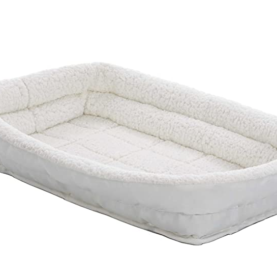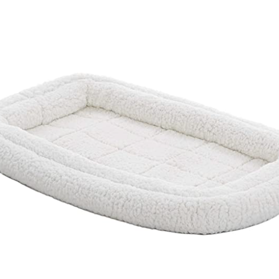 Pet bed designed for metal dog crates: double bolster unrolls to provide comfortable bumper around perimeter of your dog crate.