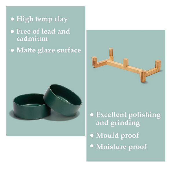 Unique bamboo stand can effectively prevent food from spilling and keep the floor clean and tidy. Non Slip bowl base, making it easy to pick up and put down.