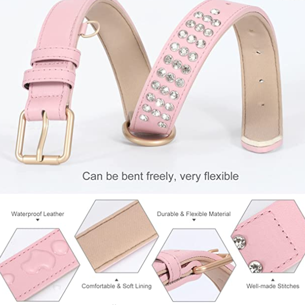 Rhinestone Design: The dog collar is decorated with many sparkling rhinestones for a very charming and cute look, which can be used to show off your dog and make your dog the center of attention. The rhinestones are all hand-set and are very durable. This dog collar is the most adorable bling your princess/prince will ever own!