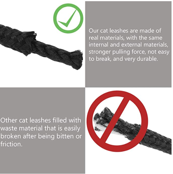Comfort: The leash is sturdy and durable yet light enough not to bother your cat. The pet will be happy roaming outside safely without running off after birds and wildlife,and without having our eyes on her 100% of the time. Great for hiking, camping, training, hunting, backyard, beach, recall training, outdoor play with tennis balls, and so on.