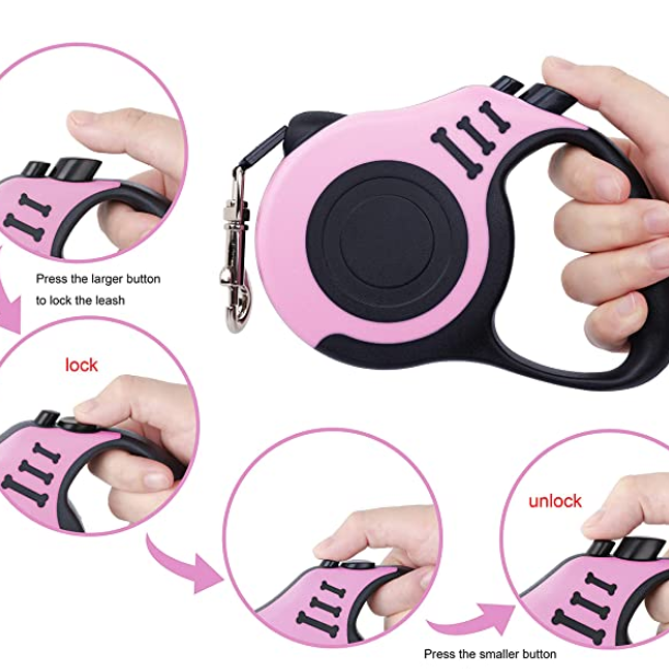 Retractable Leash: Length is 16FT/5m, suitable for small medium pets under 44lb. Inner diameter height of leash handle is 3.5"