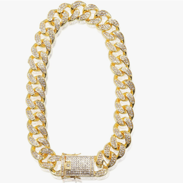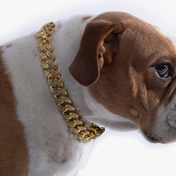 For a Fancy Pet: The Cuban link chain for dogs is a magnificent jewelry piece for one of the most important beings in your life: your pet. With a special design that is fully encrusted with diamonds, this American bully collar is a dream come true for spoiled doggies.