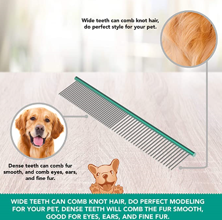 2-in-1 design both wide and dense pins: The dense pins can comb the fine hair on the eyes, nose, ears and legs, while the wide pins can loosen tangled hair and fluffy hair, which is suitable for pets styling.