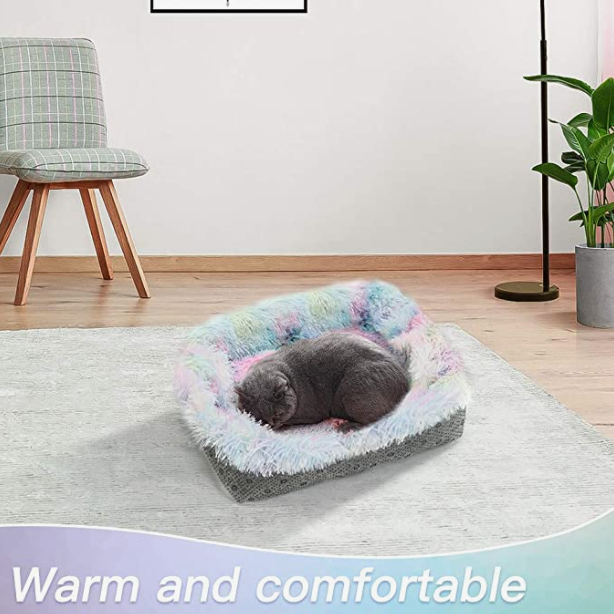 Soft and durable high quality: Made of high quality material with colorful plush fluffy, it is incredibly soft on the touch and perfectly for use for all seasons, give a soft and durable high quality bed/cushion for your pet.