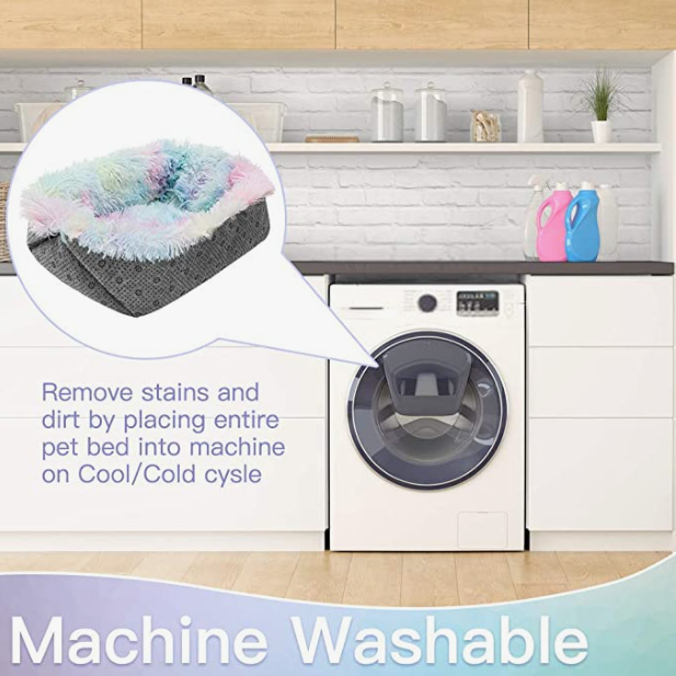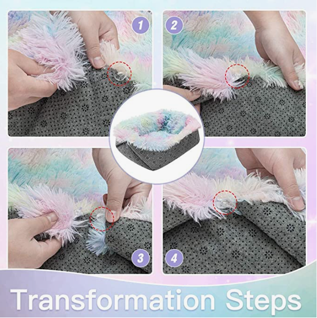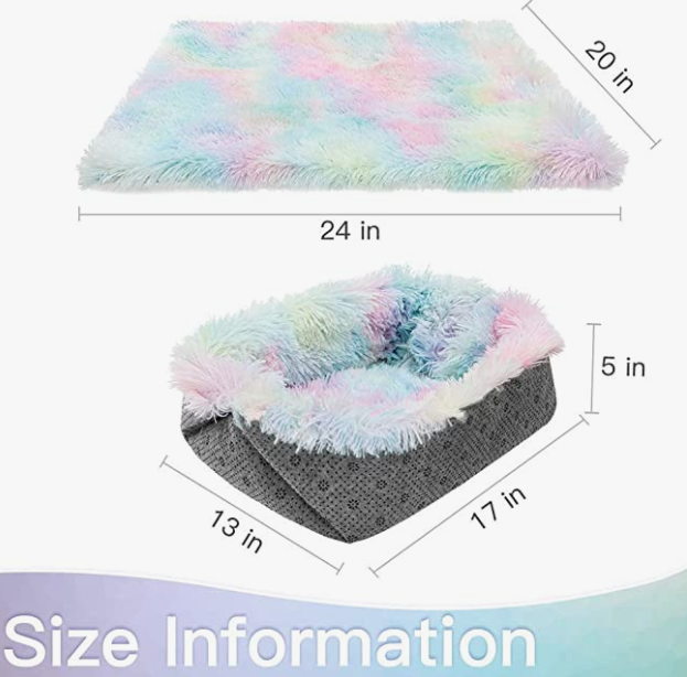 Bright colorful and unique design: Colorful plush fluffy pet bed, for a mix of modern and rainbow bedding style to create a more beautiful look for your pet, your furry friend will love it.
