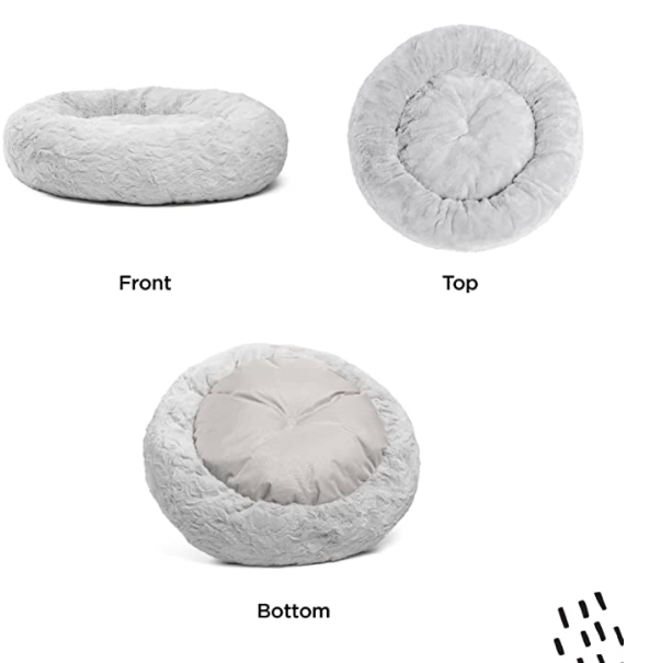 Supports better sleep:Thanks to its round shape our high-quality donut cuddler cat and dog bed is ideal for pets who love to curl up. The raised rim creates a sense of security and provides head and neck support while the super-soft filling offers joint and muscle pain relief.