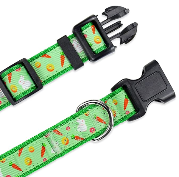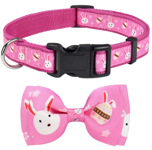Easter Dog Collars: Cute dog collars with bow are designed with Easter classic elements eggs, bunny, rabbits, carrots etc patterns and combined with bright colors, perfectly set off the Easter festival atmosphere, and make your dog stand out at the festival.