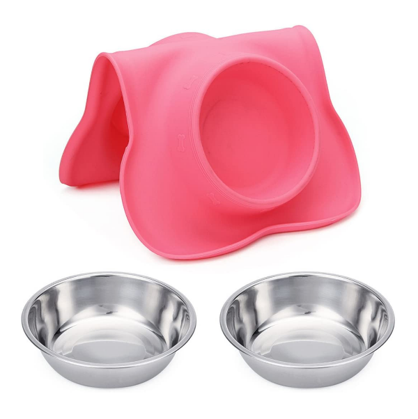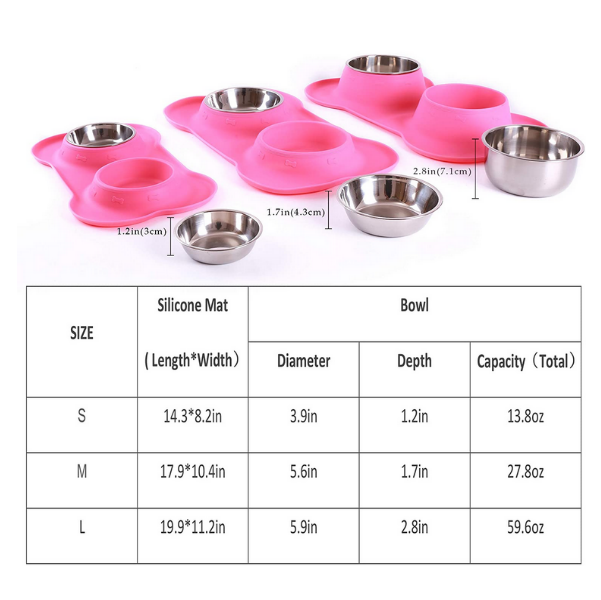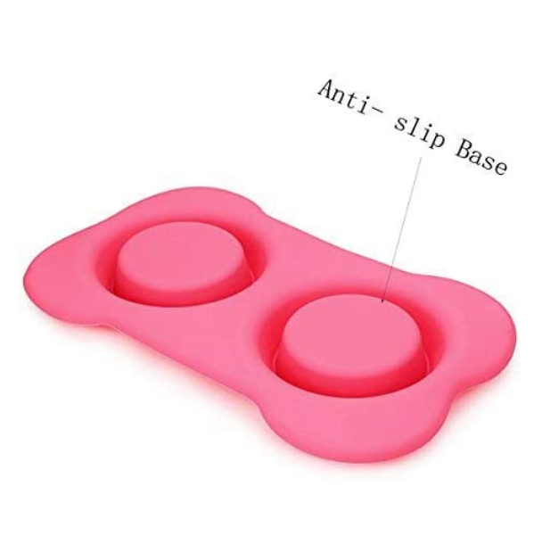 Non-Skidding & Flipping: The bone-shaped base is made of food-grade silicone, and it is designed to better hold the bowls and prevent them from tipping and skidding when your dog is eating.