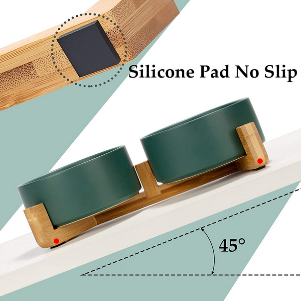 Unique bamboo stand can effectively prevent food from spilling and keep the floor clean and tidy. Non Slip bowl base, making it easy to pick up and put down.