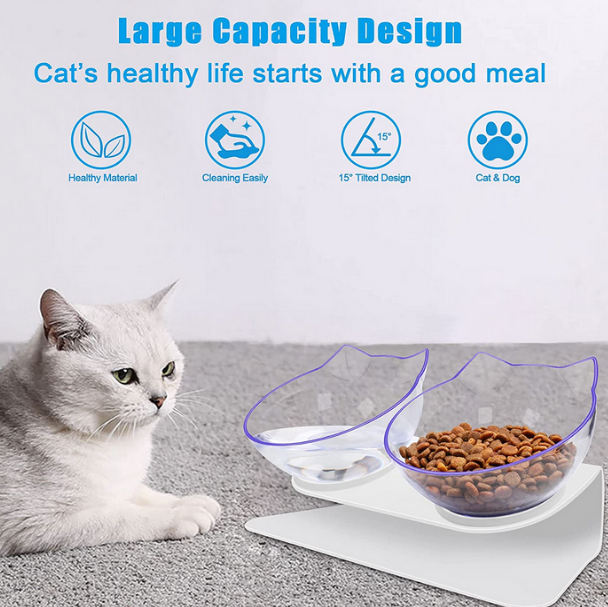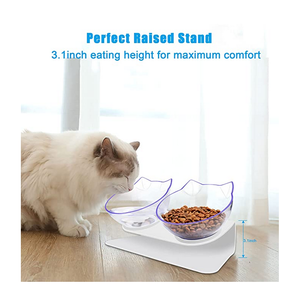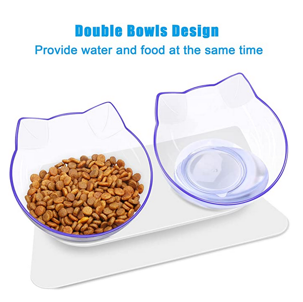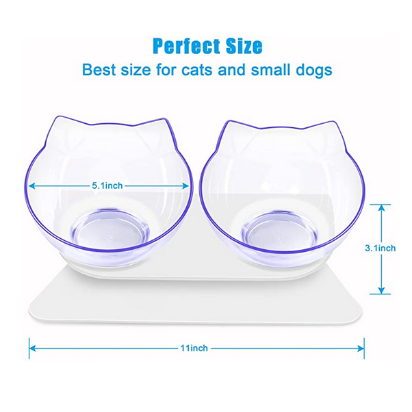 Double Bowls Design:The cat food and water bowl 2 in 1 in large oblique rim reduce cat food dropping and are suitable for flat-faced cats. Transparent bowls can control the amount of food, which design for small dogs and cats.