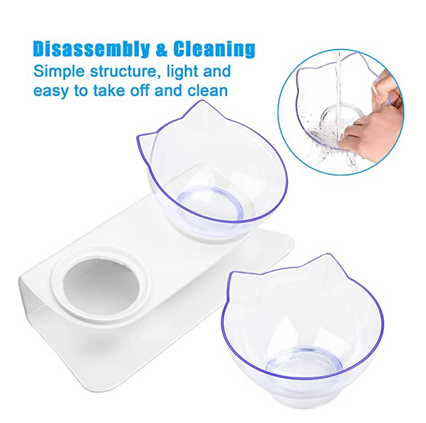 15 Degrees Tilt:15° tilted design protects the pet's cervical spine, which helps to release the stress of your pet's neck. The pet bowl offers easy eating and comfortable licking for your pet.